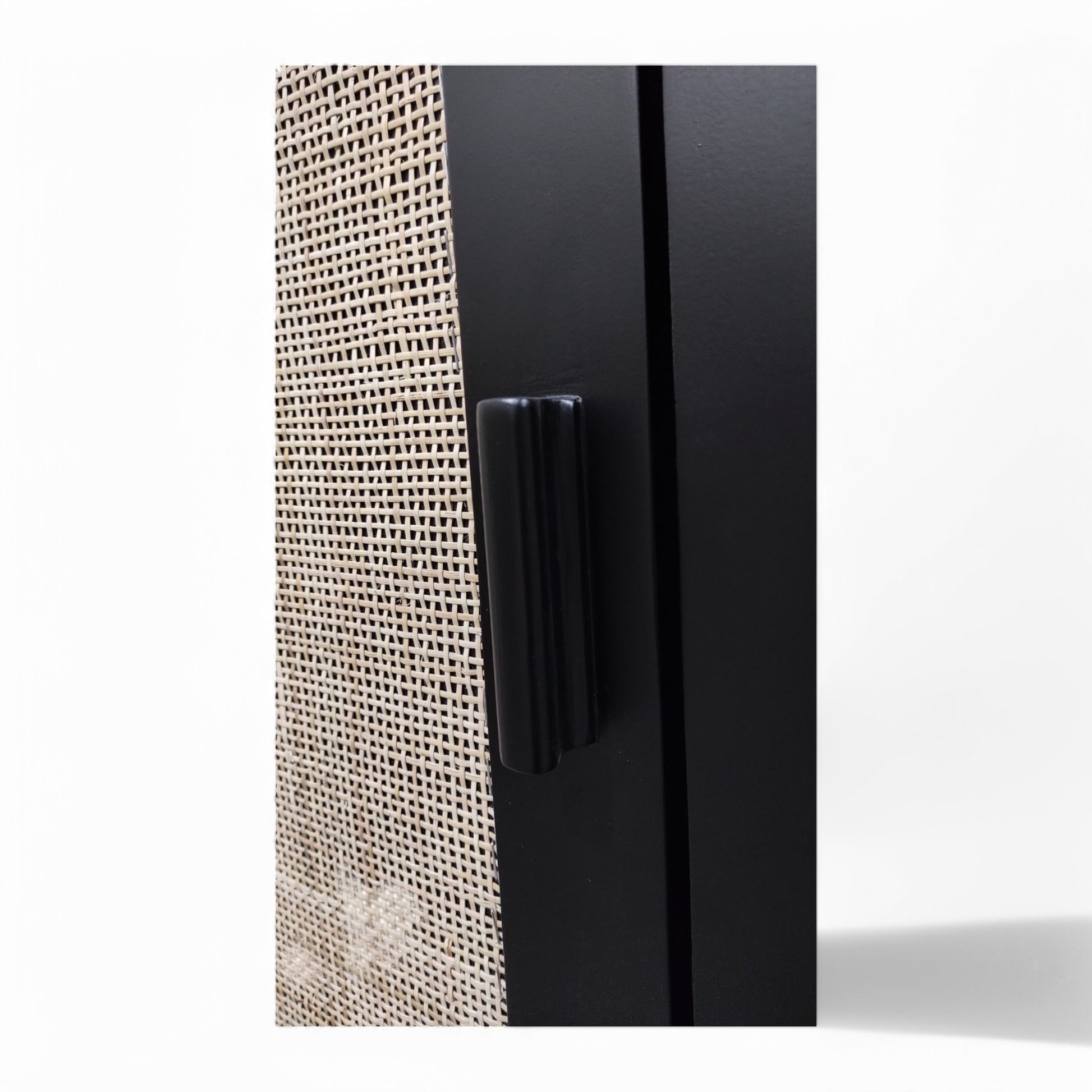 - Natural Rattan Panel Detailing – Oval-pattern rattan inserts add warmth and texture, offering a beautiful contrast to the smooth black exterior.