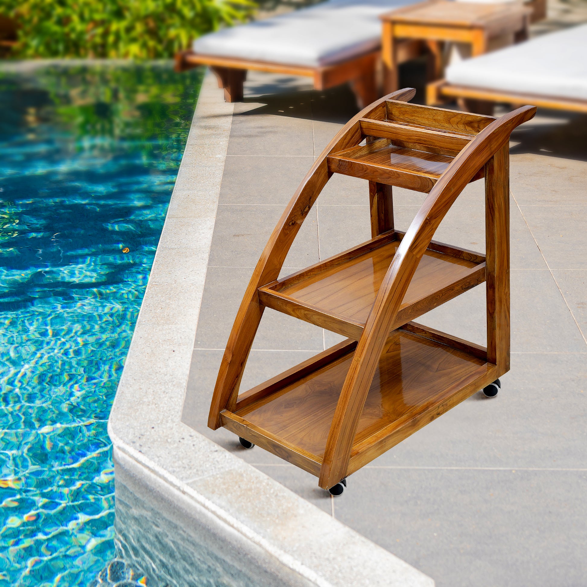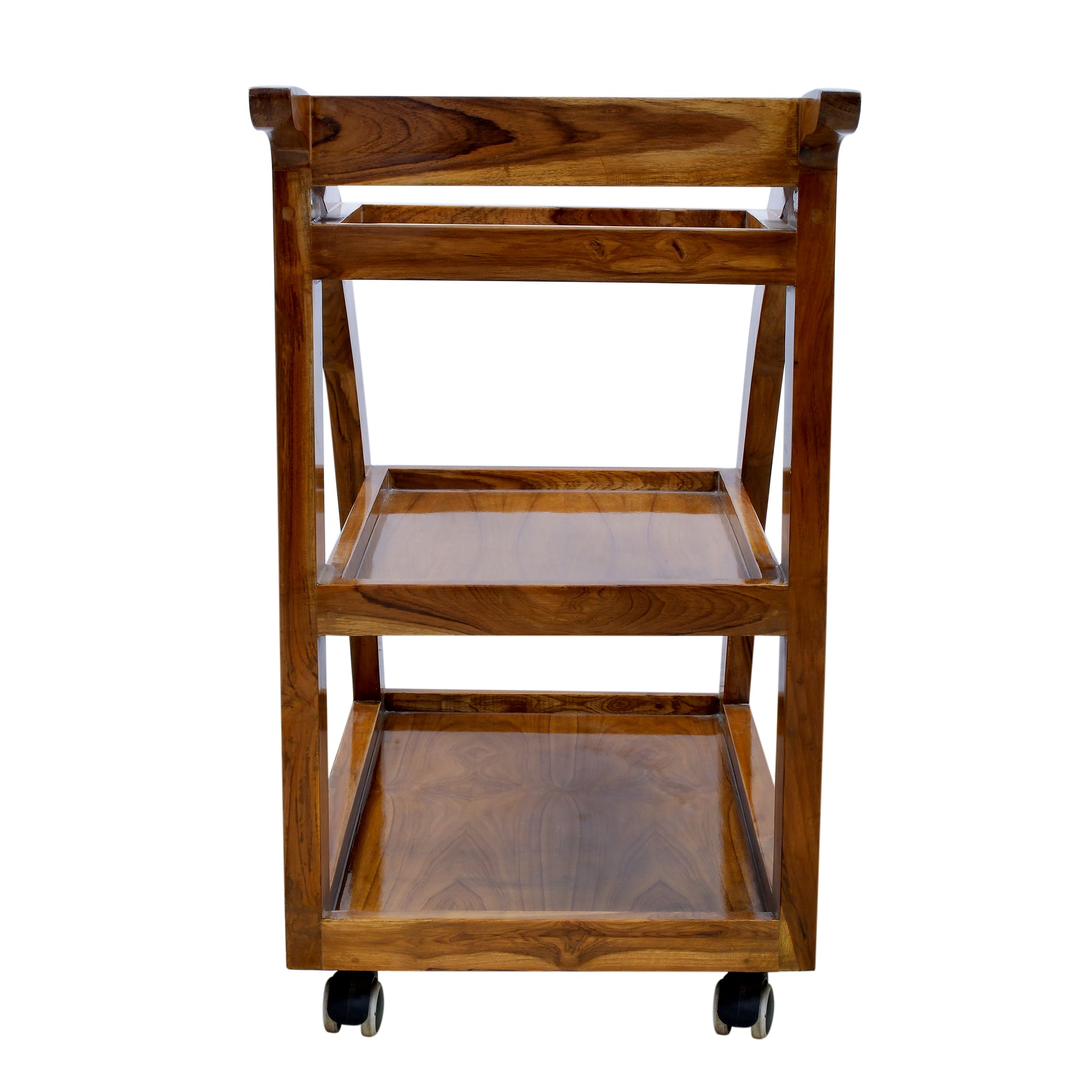 lumber casa Solid Wood Bar Trolley (Finish Color - teak glossy, Pre-assembled)