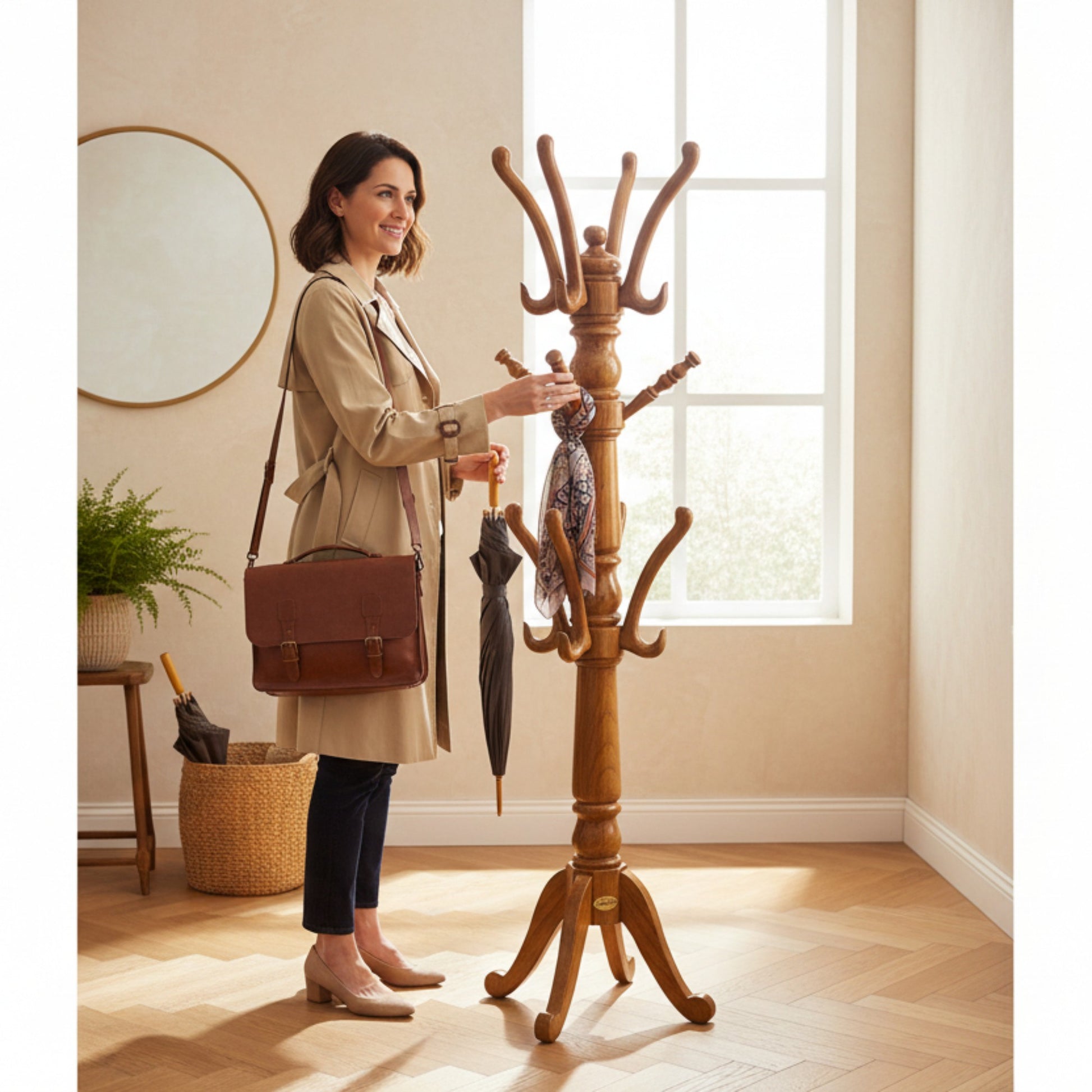 lumber casa Solid Wood Coat and Umbrella Stand (Finish Color - NATURAL TEAK COLOUR SEMI MATT, Pre-assembled)