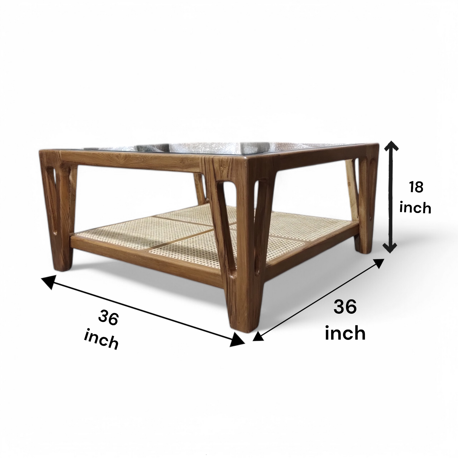 Lumber Casa Teak Wood Coffee Table with Glass Top - Highlights