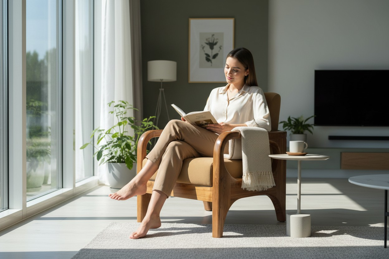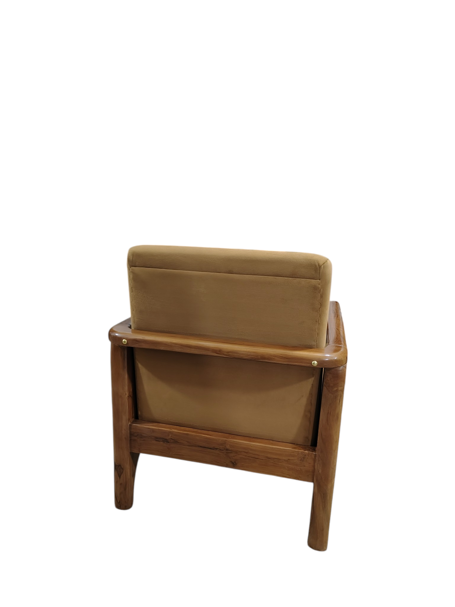 Elevate your living space with the Lumber Casa Wooden Sofa Chair, a perfect blend of classic craftsmanship and contemporary comfort. Featuring a sturdy solid wood frame with a rich, warm finish, this armchair showcases beautifully curved armrests that add a touch of elegance to any room. The generously padded seat and backrest are upholstered in soft beige fabric, offering a plush and relaxing seating experience for everyday use. Compact yet substantial, this chair measures 68.5 cm (W) x 71 cm (D) x 76 cm (H), making it an ideal fit for living rooms, reading nooks, or home offices. The smooth, polished wooden frame not only enhances its visual appeal but also ensures long-lasting durability. Whether placed as a standalone accent piece or paired with a matching sofa set, this wooden sofa chair effortlessly complements a variety of interior styles, from traditional to modern. Please refer to the size chart before placing your order to ensure the perfect fit for your space.