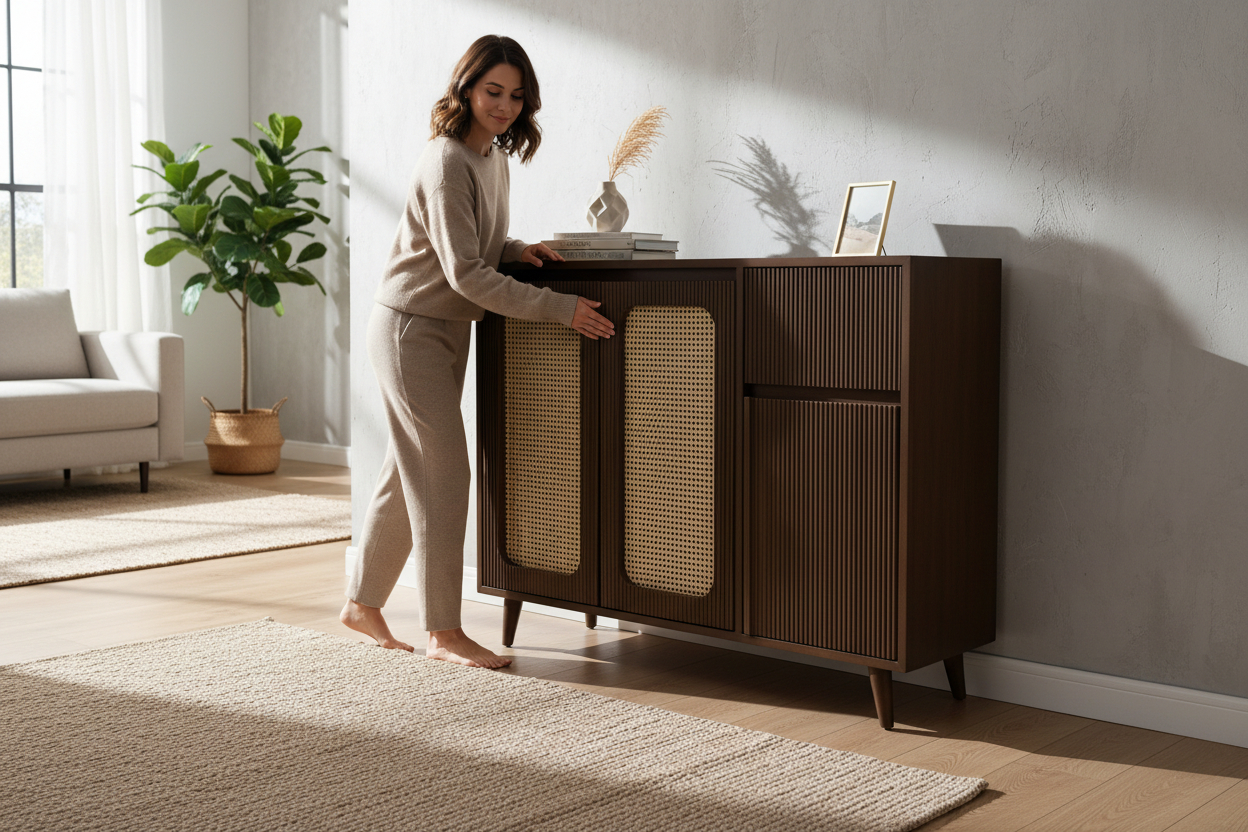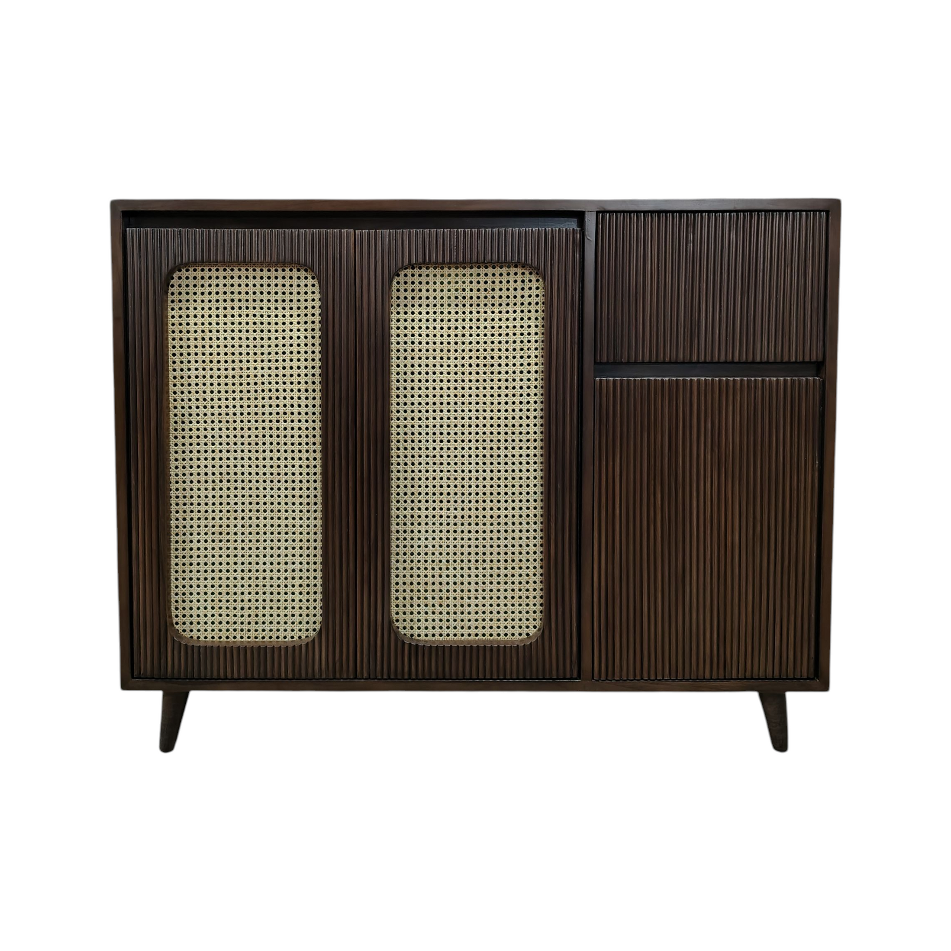 Teak Wood and Plywood Entryway Storage Cabinet with Teak Veneer Solid Wood Shoe Rack (LIGHT WALNUT, 3 Shelves, Pre-assembled)