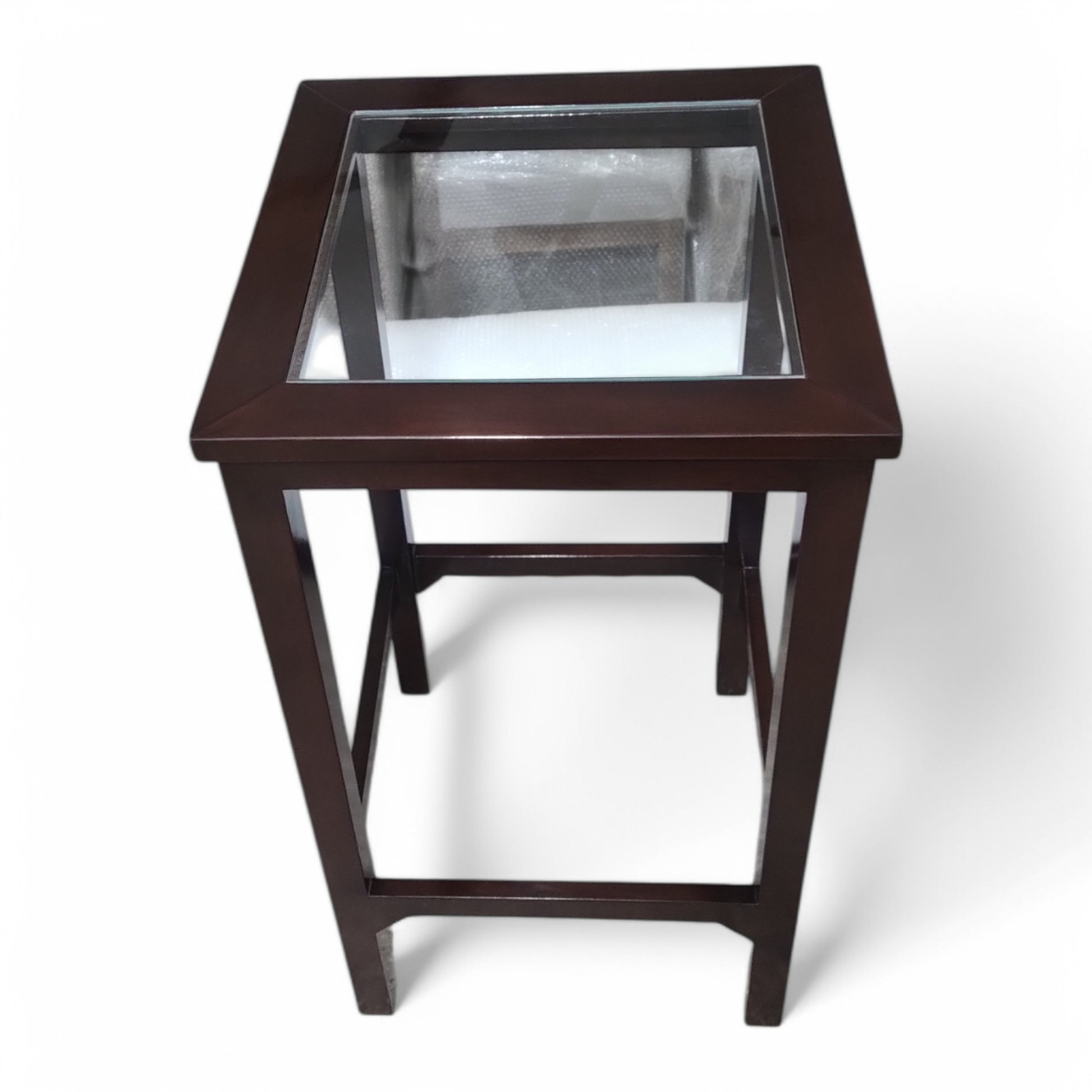 - Premium Glass Top Insert – Smooth glass surface offers a refined platform for drinks or décor while showcasing the craftsmanship of the wooden frame beneath.